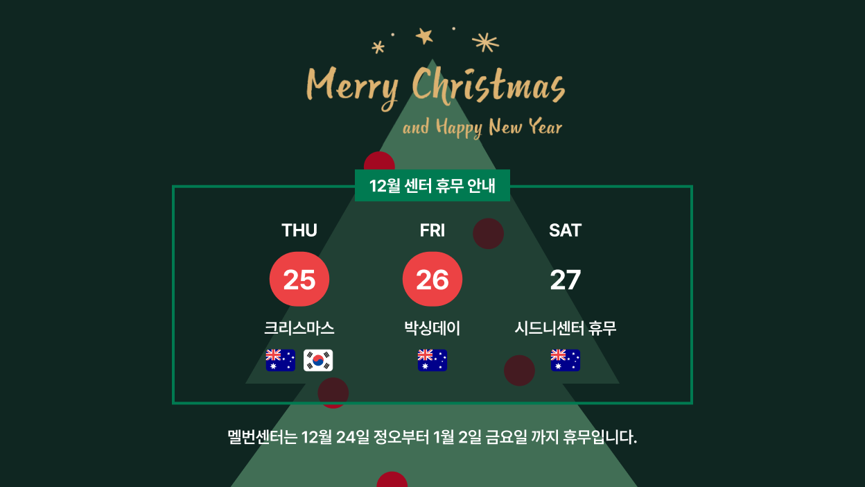 2025년 12월 27일 (토) : 시드니센터 휴무